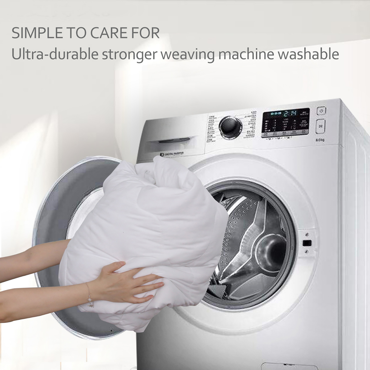 EASY CARE: Keep your bedding set looking its best with effortless care. Simply toss it in the washing machine with cold water for a quick and convenient clean(Just don't bleach). Its smooth texture resists wrinkles and fading, maintaining a fresh look even after multiple washes.